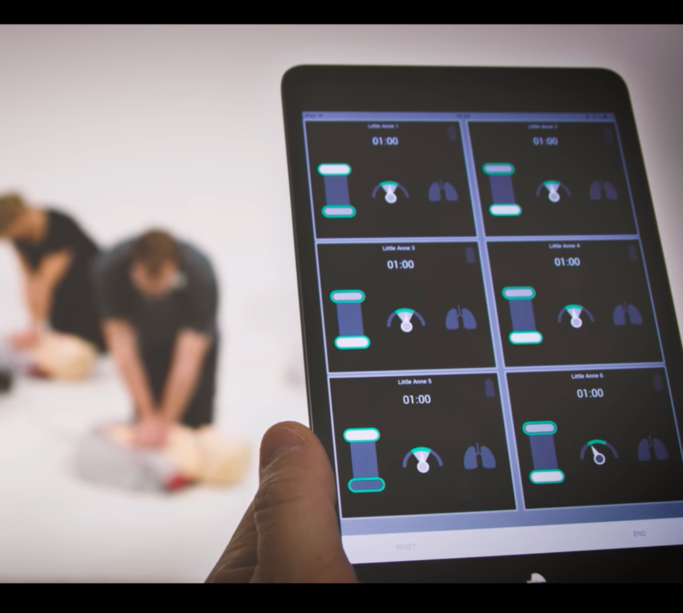 Multi-dukke Overvågning: Med muligheden for at forbinde op til 6 QCPR-dukker ad gangen, gør vores app det nemt at holde øje med alle kursisters præstationer samtidigt. Se deres kompressionsdybde, -rate, -løft, og ventilationsvolumen og guide dem med præcision.